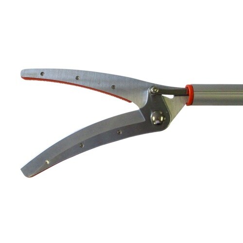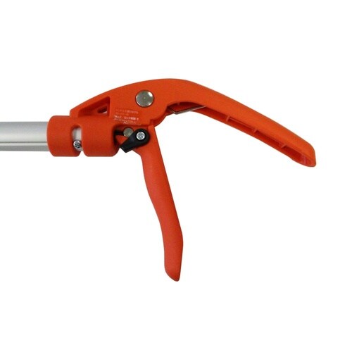 切った葉や小枝をしっかりつかむキャッチャー付きです。30cm間隔で1.8ー3.0mまで調節することができます。アルミパイプを使用し、軽量化を図りましたので、女性やご高齢の方も使いやすいです。 |