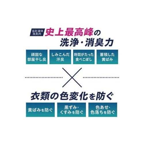 ニオイ、汚れ、衣類の色変化(黄ばみ、黒ずみ、くすみ、色あせ、色落ち)を1本で全部断つ高濃度コンプリートジェル。 |
