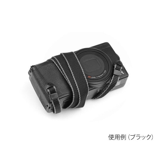 首にあたる部分は太く、カメラに取り付ける先端は細くなるように特殊製法を用いることで先ヒモから本体まで一体で織りあげています。 |