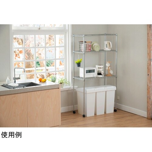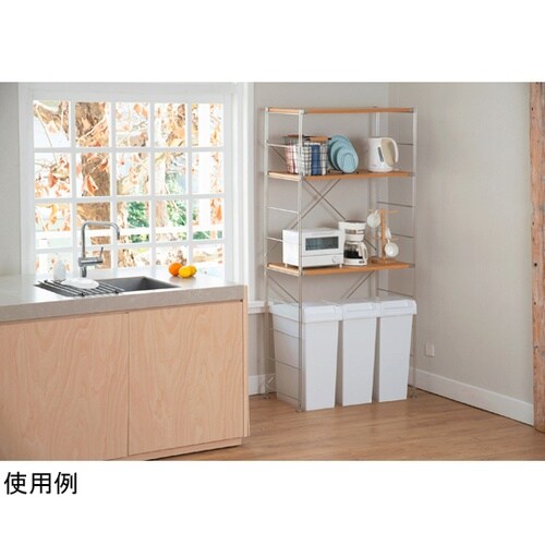 棚下74cm以上に対応した45Lのゴミ箱です。スライド式のふたが山型に折りたたまれながら開くので使用時の高さをおさえられ、高さ制限のある棚下にも無理なく配置できます。 |
