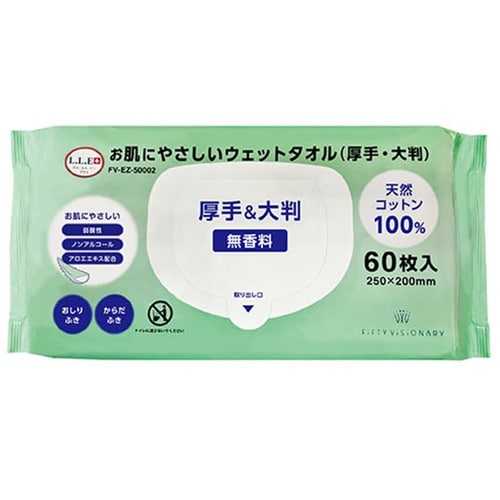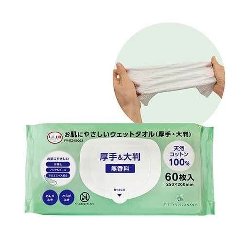 お肌にやさしいウェットタオル(厚手・大判)1箱(60枚×20袋入) FV−EZ−50002 1箱
