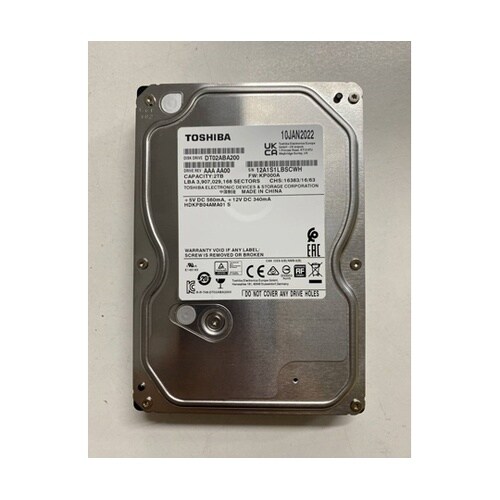 東芝製DT02シリーズはディスク回転数5400rpmの3.5インチHDDで、デスクトップPC用途の製品です。 |