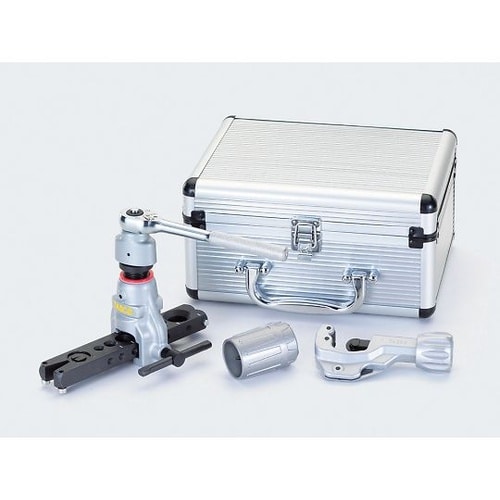 使いやすいラチェット式。少ない力でフレア加工が可能。従来冷媒用、新冷媒用の銅管フレア加工ができます。ラチェット式なので往復動作でフレア加工ができます。 |