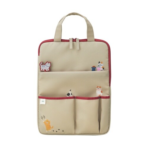 自由気ままに暮らすネコさんたちの「あるあるニャンシーン」をファスナートップで再現。ファスナートップは柔らかい合皮素材なので、折れ曲がる心配もなく、カバンの中でもかさばりません。 |