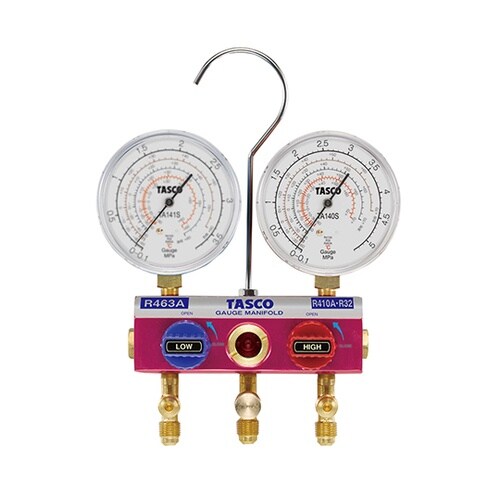 タスコ R463A R410A R32用 ボールバルブ式ハイブリッドゲージマニホールドキット TA122SV−2 1セット A022-9105
