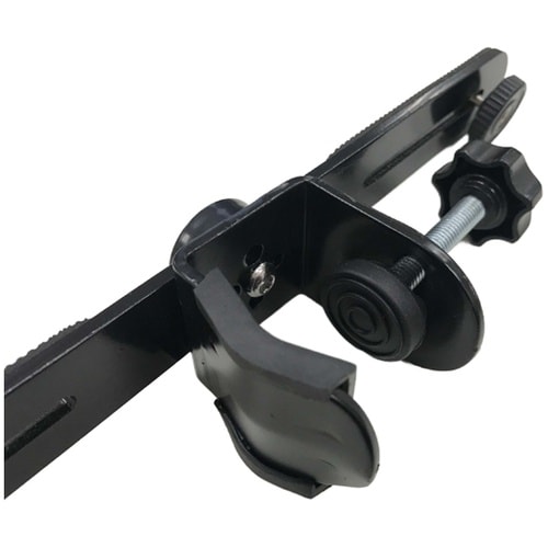 クランプで三脚や自撮り棒などに取り付けてご利用いただけます。クランプには挟んだ際に傷がつきにくいラバーマット付いております。 |