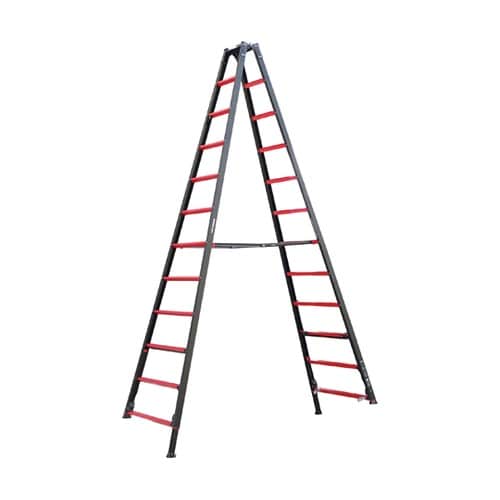 上部操作式伸縮脚付専用脚立伸縮脚435mmの調整を立ったままできるという進化とステップ幅60mmによる安心感を併せ持った新型脚立。 |