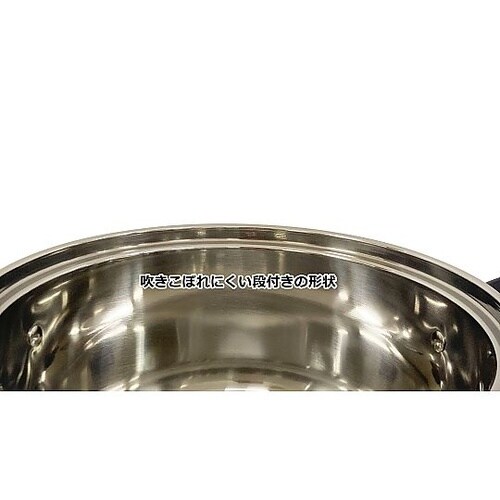 自立するガラス蓋付きです。吹きこぼれにくい段付の形状です。蓋を裏返してコンパクトに収納できます。蓄熱性に優れた三層底です。 |