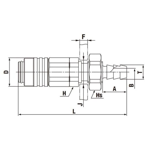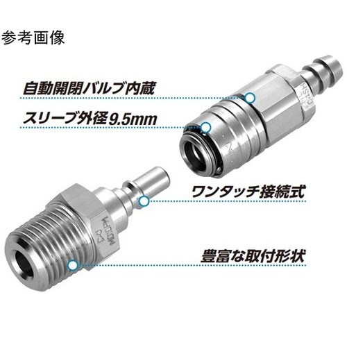 スリーブ外径9.5mmの小型・軽量タイプソケットにバルブを備えながらスリーブ外径9.5mmの小型。プラグ・ソケットの接続は、押し込むだけのワンタッチ接続。 |
