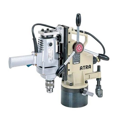 市販のドリルを取り付けられる電機ドリル搭載モデルです。磁器吸着式で優れた「保持力」と「ドリルポイント設定」が容易な使い良さを兼備しています。 |