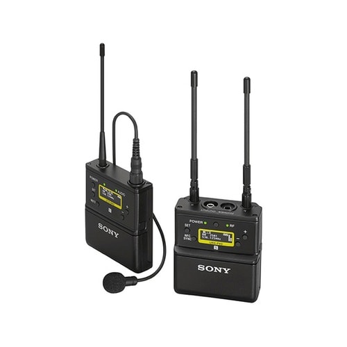 ボディーパックトランスミッター(送信機:UTX−B40)とポータブルダイバーシティーチューナー(受信機:URX−P40)のセット。 |