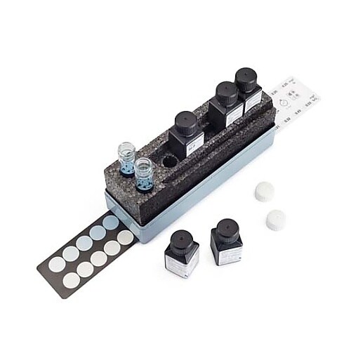 Merck エムカラーテスト(TM) アルミニウム テスト 測定原理: 比色分析(専用比色ボックスおよびショートチューブによる) 0.07−0.12−0.20−0.35−0.50−0.65−0.80mg/L Al A024-9948