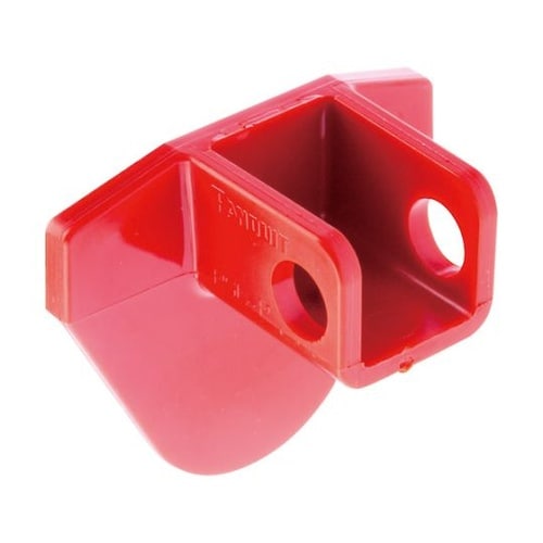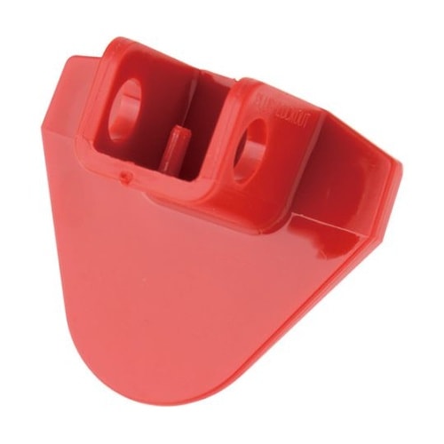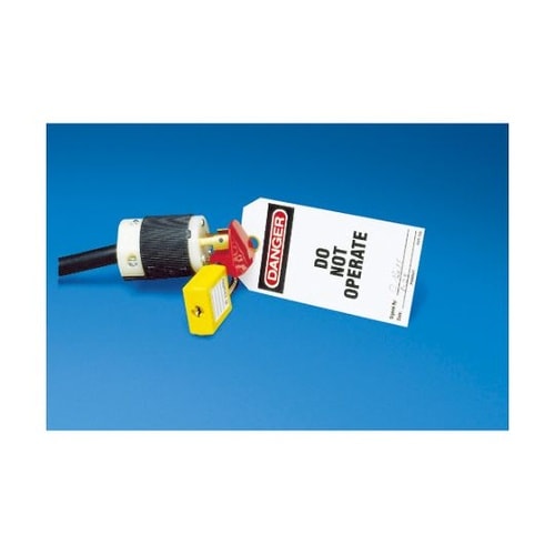 プラグの穴にロックアウトを取り付けて、コンセントに差し込めないようにします。 |
