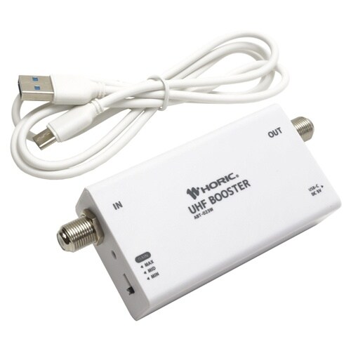 ケーブルの延長や分配の影響で減衰した地上デジタル信号を増幅し、テレビ画面の映りや乱れを改善します。本体側面に利得調整用のスイッチが搭載されており、使用環境に応じて利得範囲を設定することが可能です。 |