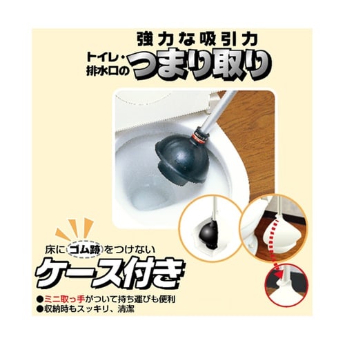 洋式便器の排水溝に密着しやすい形状!優れた吸引力を発揮します。床にゴム跡をつけないケース付き。軽くてサビにくいアルミ柄。 |