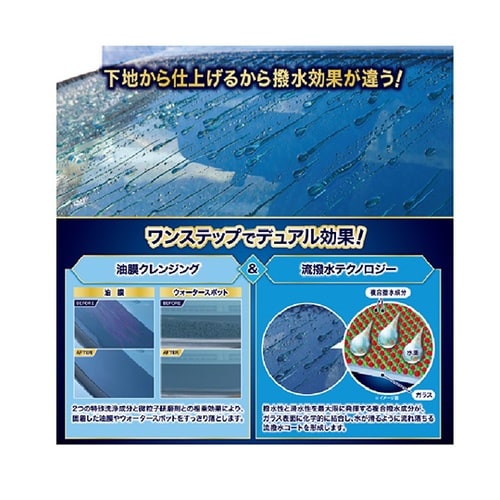 2つの特殊洗浄成分と微粒子研磨剤との相乗効果により、固着した油膜やウオータースポットを除去しガラス表面をコーティングに適した状態に整えます。 |
