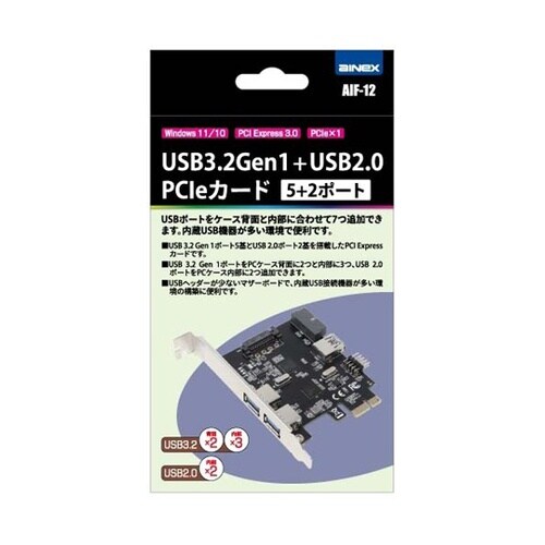 USB 3.2 Gen 1ポート5基とUSB 2.0ポート2基を搭載したPCI Expressカードです。 |