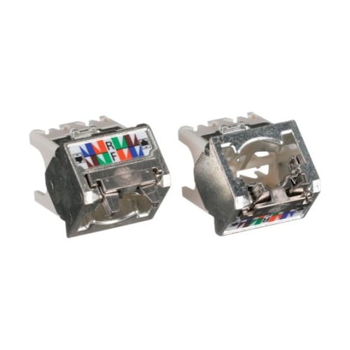 ケーブルの挿入が上下45度からできるシールド付きモジュラージャック用のキャップです。シールド付きモジュラージャックと組み合わせることでケーブルを上下45度から挿入できます。 |