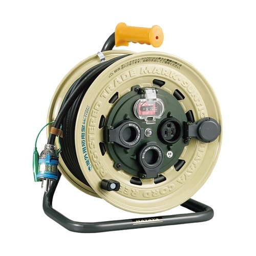 温度センサー内蔵リール。危険な電線の溶解・焼損を未然に防ぎます。電線の異常な温度上昇を感知し、自動的に電源を遮断します。手動復帰型電線温度が下がったら、復帰ボタンを押して電源を復帰させます。 |