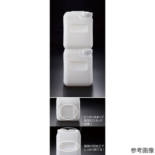 PFA製回転成形容器の角型バージョン目安メモリ付きです。オールフッ素樹脂製なので、耐薬性・耐熱性に優れ、あらゆる薬品の保管や運搬等にご使用いただけます。上下に設けられた凹凸にあわせて段積みが可能。 |
