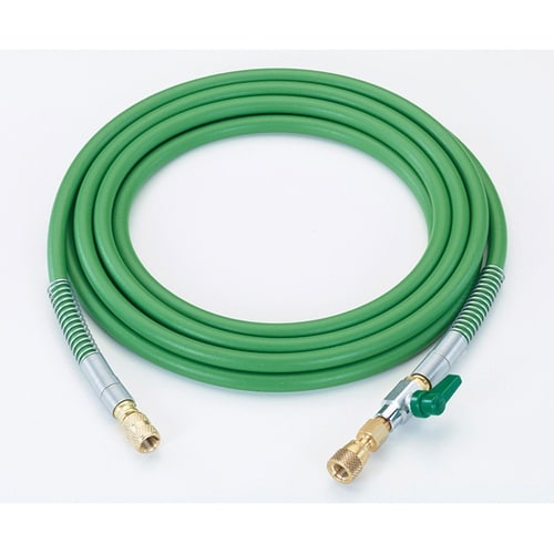 ホース長:5m | 仕様:両端1・4″フレア (メス) ストレート、片側バルブ、ムシ押付 | 常用圧力:5.5MPa | 単位:1個