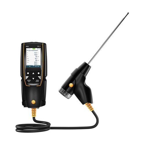 testo 310 II はエントリーモデルの燃焼排ガス分析計。プローブ一体型のコンパクト設計で持ち運びがしやすい。約30秒でゼロ調整が完了するので、現場での業務を効率的に実施。 |