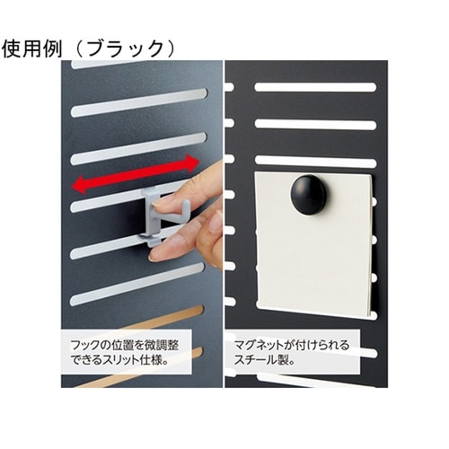 壁面収納を増やして卓上を広々使えるアレンジボード。アレンジボード用フックSサイズ6本・Lサイズ2本付き。フックの位置を微調整できるスリット仕様。タブレットPCスタンドとしてデスクワークの目線上げに。 |