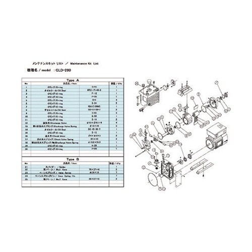 適合機種:GLD−280、GLD−280A、GLD−280B | タイプ:A | パーツ内容:オイルシール、Oリング、排気弁 | セット内容・付属品:…