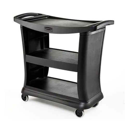 洗練されたデザインで、多目的に使える機能的でスタイリッシュな樹脂製カート。サービス用にも、下膳用にも多目的に使用可能。最上段にはバスボックスを2つ重ねて置くことができます。米国・ラバーメイド社製。 |