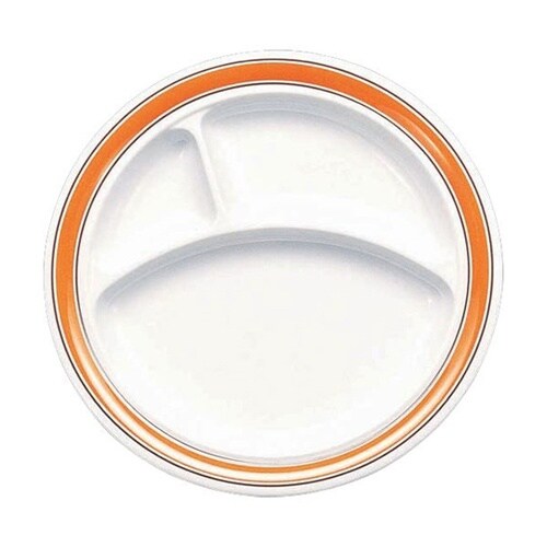 使い勝手抜群の三ツ仕切ランチ皿。別売の皿枠丸型中「DP−26」、皿枠丸型大「DP−40」、スタック用蓋「DP−31」、フードカバー「F−30」がご利用いただけます。 |