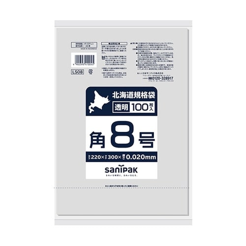 日本サニパック 北海道規格袋 8号 吊下げ 0.02mm 100枚×30冊入 LS08 1ケース A026-2891