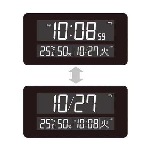 高コントラストで見やすいデジタル掛時計液晶表示を70色から選択できます。 |