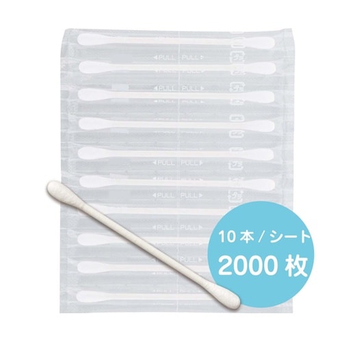 紙軸綿棒を1本ずつ包装し、10本連なっております。肌にやさしいコットン100%キトサン抗菌加工で、より衛生的に安心してお使いいただけます。 |