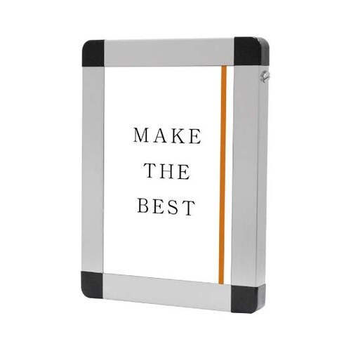 【ポスターの交換方法】▼ポスターの交換は、本体上部の左右にあるビスを取り外し、上辺のフレームを引き抜いてアルミ複合板とアクリルカバーの間にポスターをセットするだけです。 |