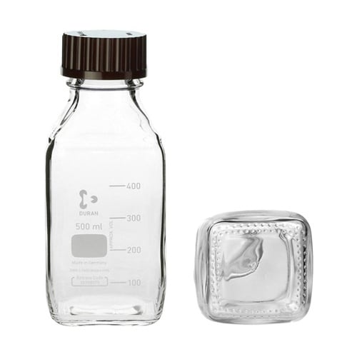 ねじ口瓶角型 デュラン(R)赤キャップ付 500mL 10本 017230−5001A 1ケース