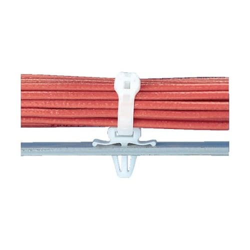タイマイントの形状をした押し込み型固定具です。設置場所が振動するなど、しっかりと固定する必要がある時に適しています。パネルが薄くてもしっかりと固定できます。結束バンドの固定。 |