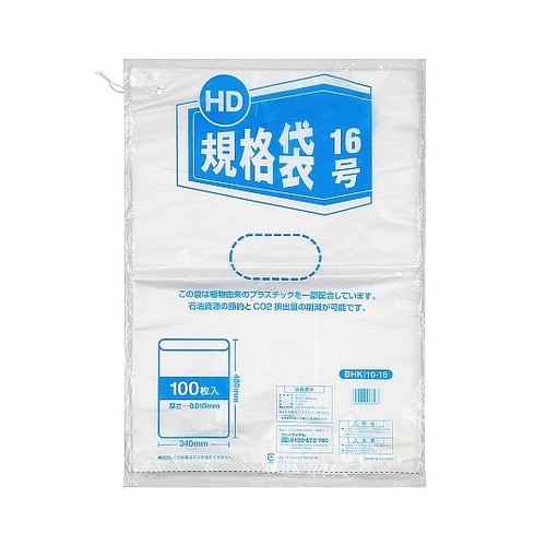 HD規格袋 バイオマス由来10% 16号 100枚×15袋 65−3966−95 1ケース