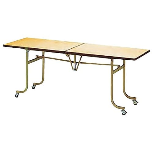 天板中央部で折り畳み可能です。簡単な操作だけで天板の開閉が可能です。キャスター付なので所定の位置まで容易に移動できます。