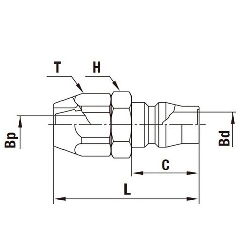 ホースバンド不要でホースを装着。ホースへの取り付けは、ニップルに差し込みナットを締めるだけ。ホース外周面を締め付けるため、ホースの抜けや流体の流出が起こりにくい構造です。 |