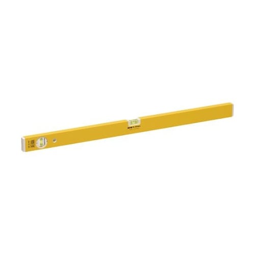 両端は耐衝撃性を高めるプラスチックリブ付です。スタビラ社独自の気泡管完全固定方式のため、狂いにくい構造です。(ドイツ特許取得)高精度、プロ仕様のアルミレベルです。 |