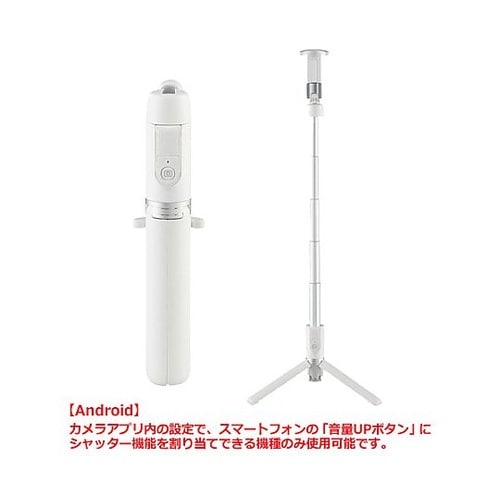 自撮り棒がスタンドに変身。持ち運び、らくらく。Bluetooth取り外し可能リモコン付き。幅56ー80mm、厚み10mm以内のスマートフォンに対応。 |