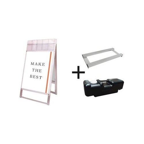 常磐精工 ポスター用スタンド看板マグネジ パンフレットケース付 A1両面ホワイト(屋外用) ウエイトアーム・水タンクセット PSSKMNP−A1RW−G−3SET 1個 A027-4276