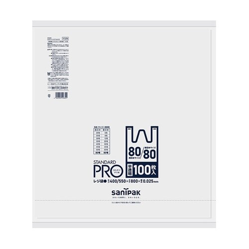 日本サニパック STANDARD PRO レジ袋 80号 半透明 100枚×5冊入 Y12N 1ケース A027-5106