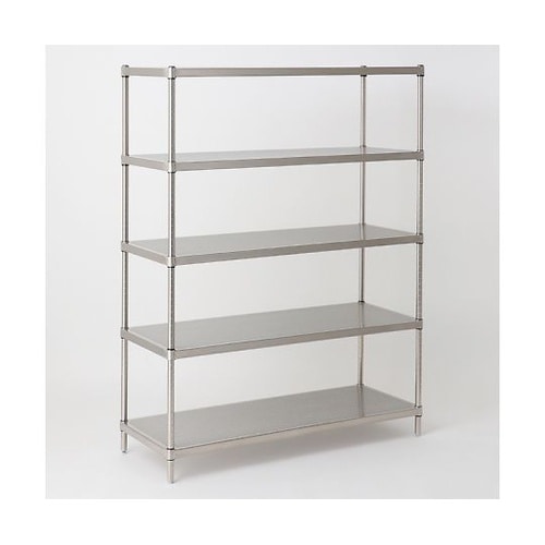 SUS304(18−8)ステンレス棚。段差の無いフラット棚。耐錆、耐食性に優れ、病院、半導体工場に最適。耐荷重100kg/棚1段。 |