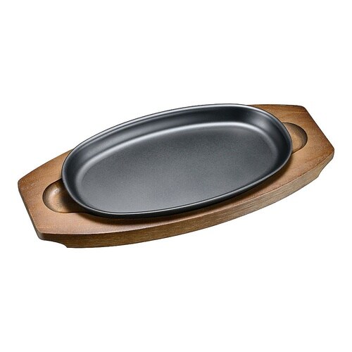 Feステーキ皿従来の鉄鋳物製と比べ軽量化を実現。熱効率が非常に高く、作業が楽になりました。※ステーキ皿のサイズ表示は鉄板の外寸法になります。