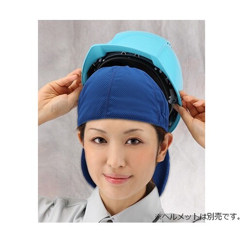 水で濡らして、気化熱効果で冷やします。後頭部の日除けは取り外し可能です。 |