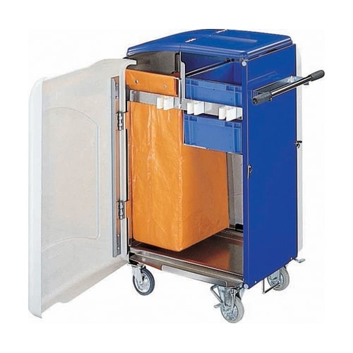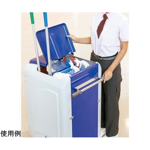 前後どちらからでも取り出せる開閉式フタです。清掃用具が固定できるキャッチャーもついています。 |