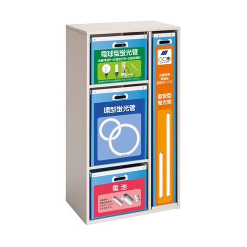 蛍光管および乾電池(水銀を含む)などの回収に役立つ回収ステーションに適しています。 |