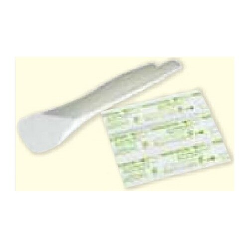 個包装された、折り曲げて使うタイプの紙スプーンです。 |