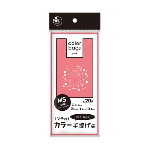 プラスプラスカラー手提げ袋 MS ピンク 02ネコ 20枚×200冊入 PPC−PMSTD02−20 1ケース